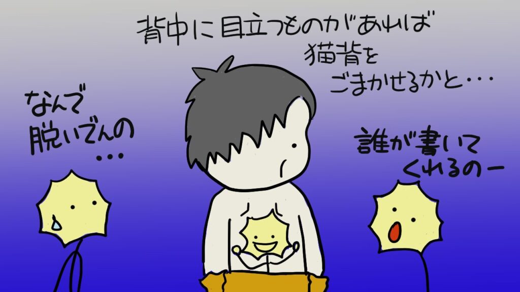 おやじの背中を見て…とかの感動するお話ではありませんのであしからず。先日、動画に映る機会があり、自分の姿を客観的に見る機会がありました。どこのおばあさん?と思った後、自分であることに気づいた時のショック…。別の機会に身長計で身長を測りました。身長というのはあの棒にかかとをつけ、お尻をつけ、背中をつけ、後頭部をつけ、顎をひいて測りますが、なんと、背中までつけた後、後頭部が棒につかないのです…。おわ、つかない…とショックを受けながら強引につけようとやたら胸を張りなんとかつきましたが、あれは後頭部とは言い難い…。頭頂部に近い後頭部…。必然、顎をひくことはできません。係の人は特に何も言わず数値を読み上げていましたが、記憶にある身長からは1cmほど縮んだ値になっていました。こうやって縮んでいくのね…。ショック…。ワタシの好きなイラストレーター(など)の『みうらじゅん』さんが、オイル(老いる)ショックとか言っていていつも共感していますが、今日もまた共感ポイントを見つけてしまったのでした…。電子ピアノを弾いている時もきっと猫背になっているでしょう…。録画するのはカンタンですが、怖くてできません…。